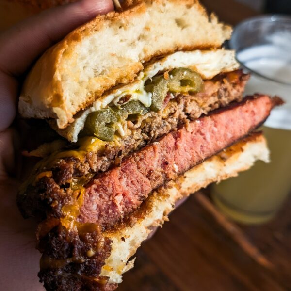 Local Flavor Restaurant take on A Hangover Burger, includes a hot link, which I’m not sure if it qualifies as …